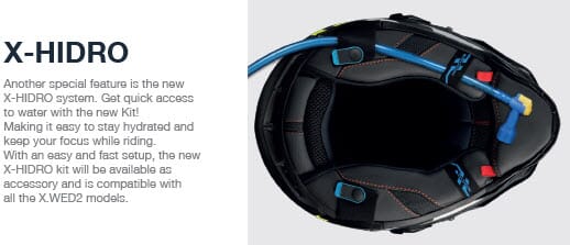 - X-Hidro: det er klargjort for å feste drikkesystem på hjelmen (se bilde).