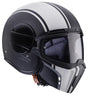 Caberg Ghost er en halvhjelm i fiber som har maske og "briller". Masken kan tas av "brillene" slik at hjelmen kan brukes kun med "briller". "Brillene" er duggfrie. Fronten (maske og brille) åpnes enkelt med 1 hånd. Når "brillen" er lukket hviler de mot kinnet på en skumgummi-pute. Puten kan demonteres eller erstattes av pute med annen tykkelse.