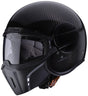 Caberg Ghost er en halvhjelm i fiber som har maske og "briller". Masken kan tas av "brillene" slik at hjelmen kan brukes kun med "briller". "Brillene" er duggfrie. Fronten (maske og brille) åpnes enkelt med 1 hånd. Når "brillen" er lukket hviler de mot kinnet på en skumgummi-pute. Puten kan demonteres eller erstattes av pute med annen tykkelse.
