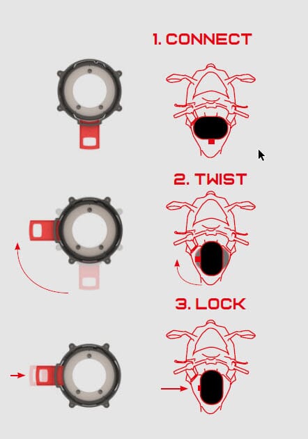 - Direkte på motorsykkeltanken med Twistlock-systemet
