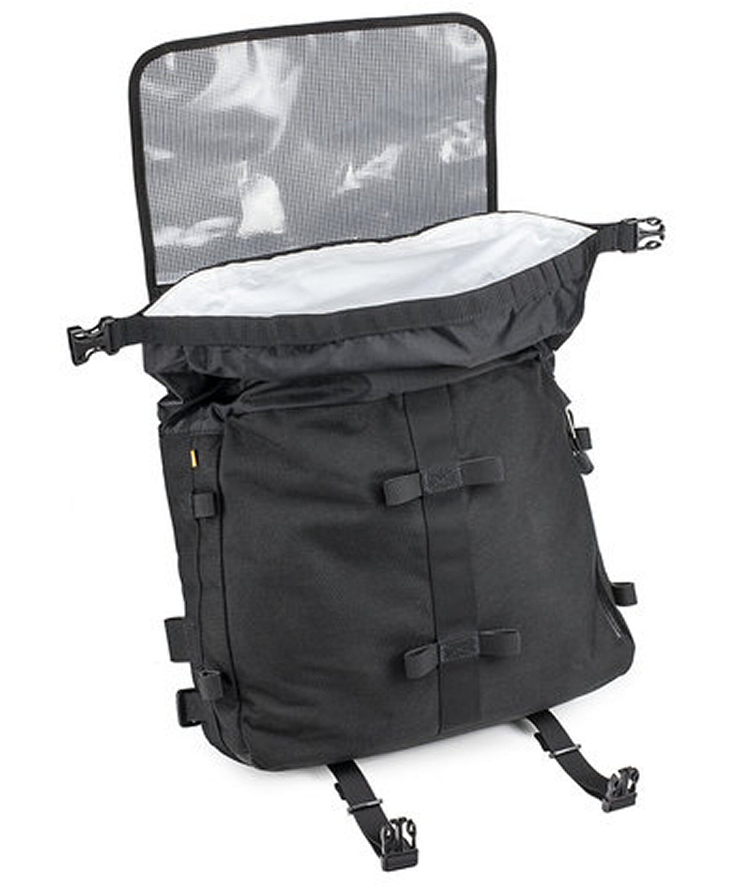 - Det vanntette hovedrommet med kraftige YKK®-glidelåser er på 16 liter. Her er det plass til en 17 ”bærbar PC pluss kabler / ladere.